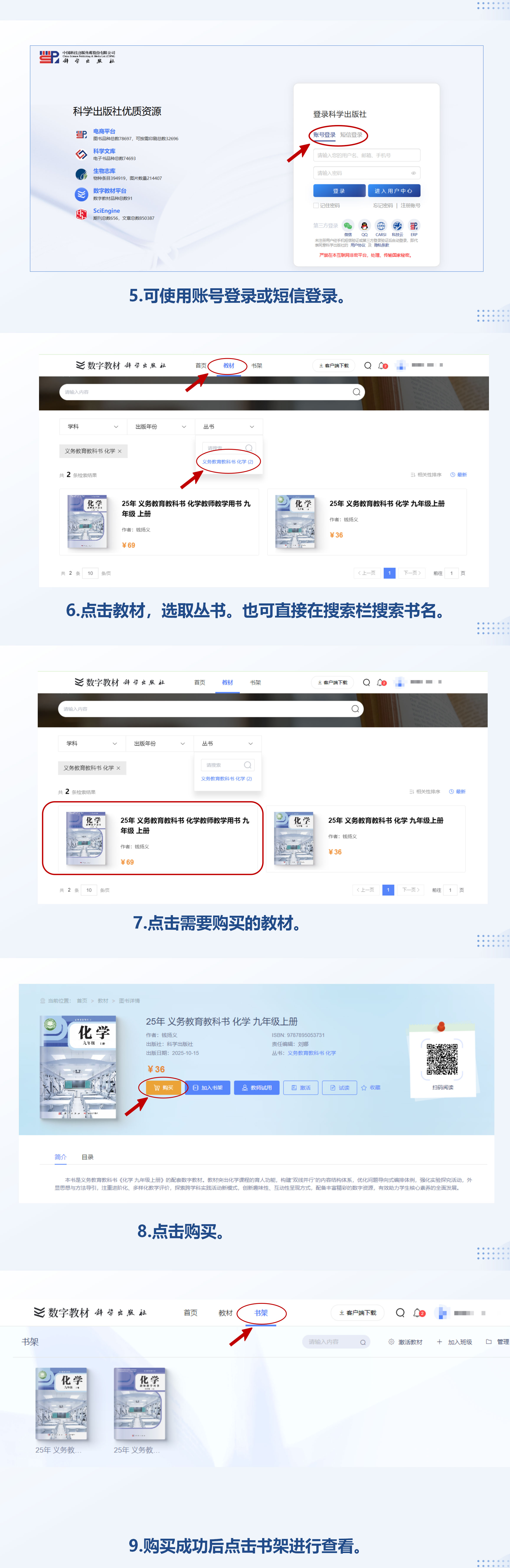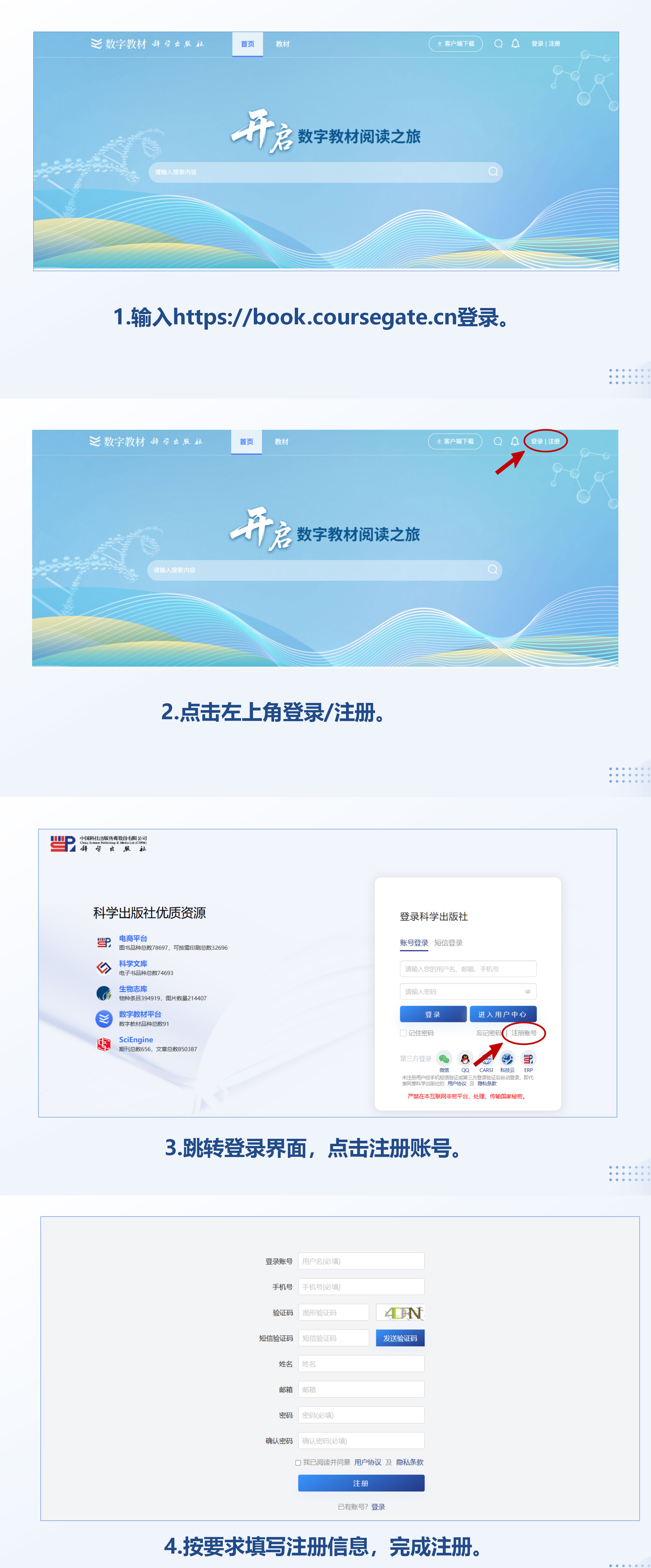 为帮助您顺利操作,数字教材平台使用方法详见下图。