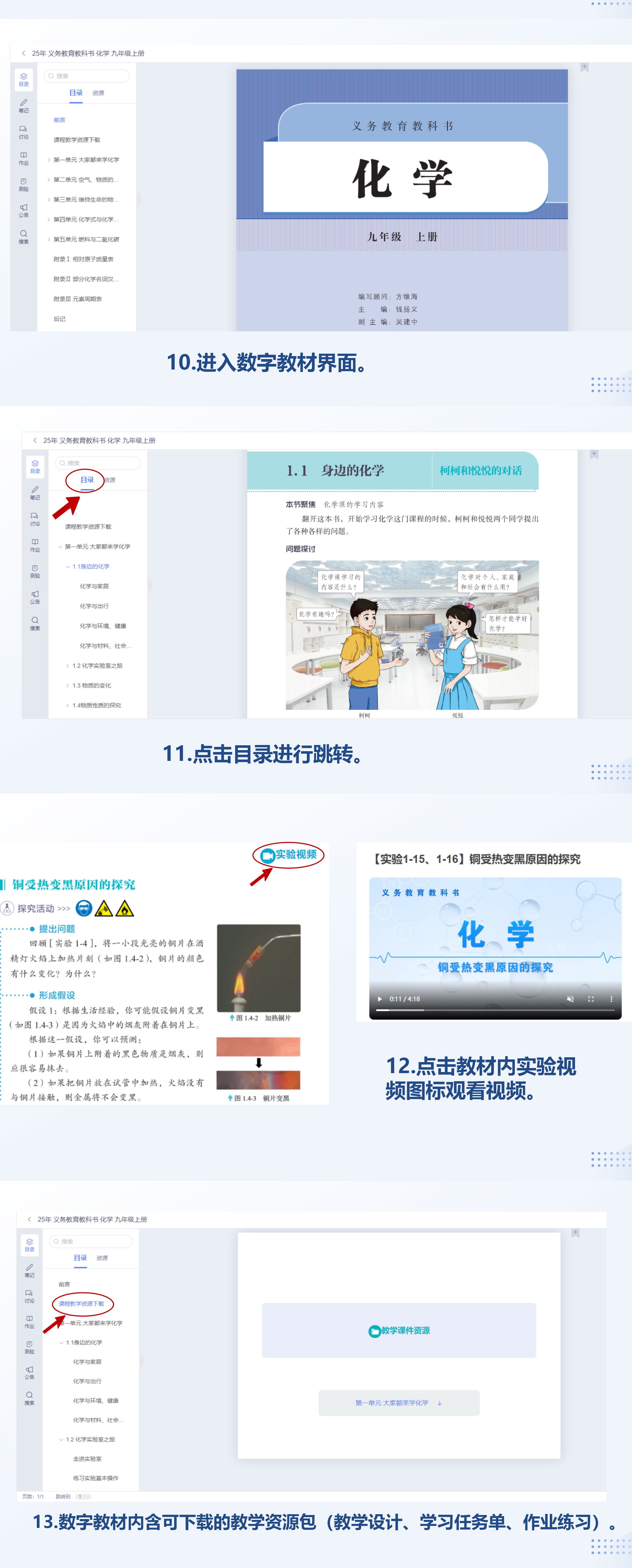 我社精心打造的数字版化学教材和教师教学用书已正式上线。数字版教材和教参内嵌了实验视频、课程资源包(教学设计、学习任务单、作业练习)等丰富资源,欢迎广大读者选购。